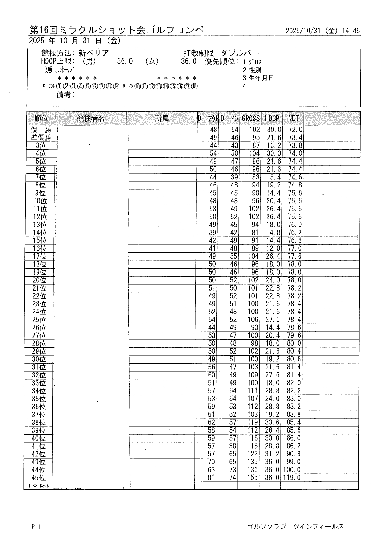 ミラクルショット会(ゴルフコンペ)